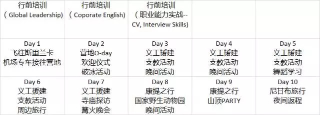 (培训时间不包含在斯里兰卡10天期间,内容包括:行程详解、leadership、Global Coporate English、Professional CV & Interview Skills)